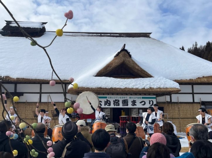 福島県下郷町・大内宿で毎年2月に開催される「大内宿雪まつり」は、雪に包まれた茅葺き屋根の古い宿場町が無数の雪灯籠の灯りに照らされる冬の祭典です。