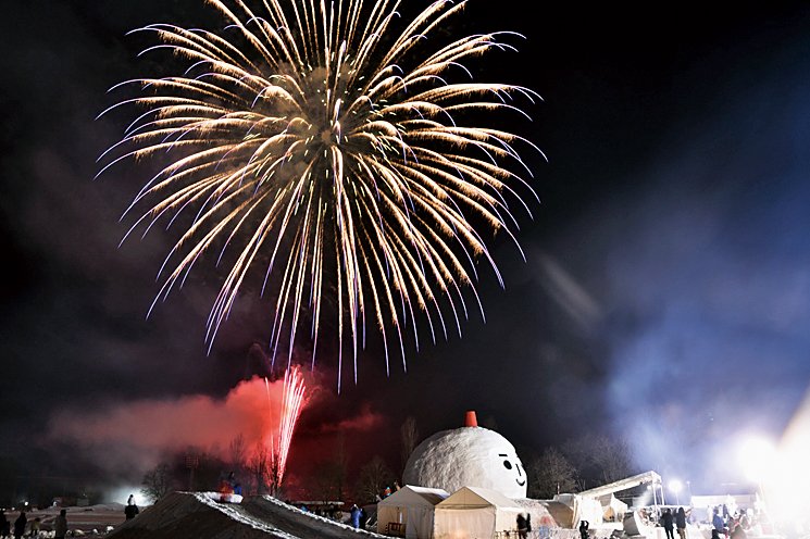 ステージを彩る 雪上音楽ライブ「ホワイトステージ」やよしもとお笑いライブ、さらには白銀の夜空を華やかに照らす 雪上花火 など、雪国ならではの催しが満載です。