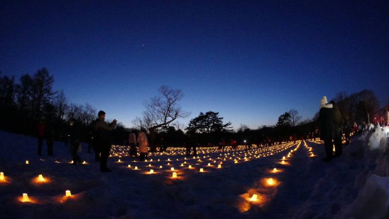 凍ったレンゲ沼に約3,000本のキャンドルの灯りが広がり、夜空には花火が打ち上げられ、昼とは違った表情を楽しめます。日中は雪遊びや体験イベント、屋台なども行われ、子どもから大人まで一日を通して冬の裏磐梯の魅力を満喫できるイベントです。