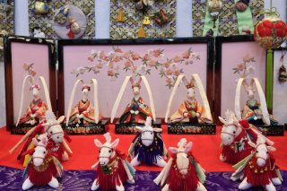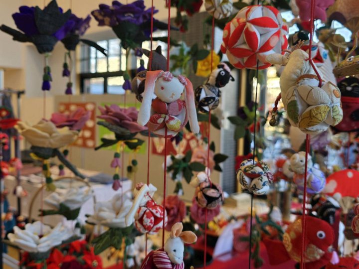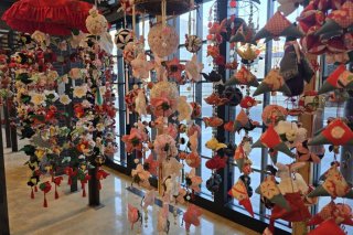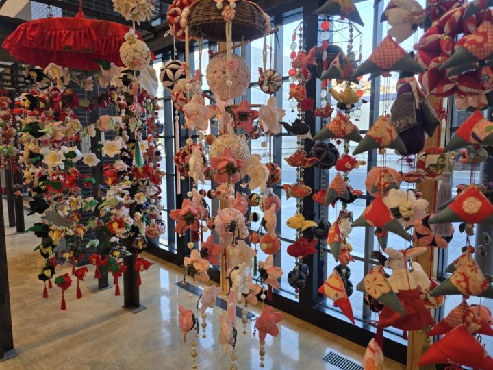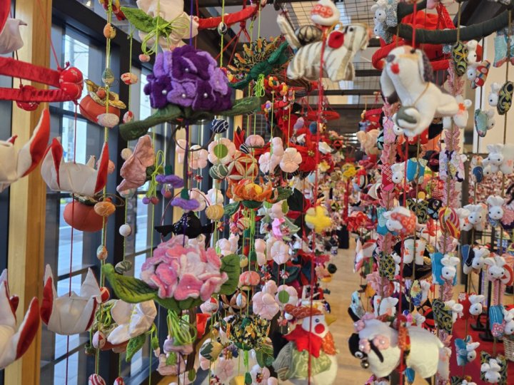 色鮮やかな布細工が連なり、やさしく揺れる「つるし雛」。