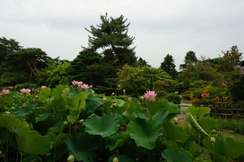 国指定名勝の大名庭園で、夏の風物詩・ハスの花が見頃を迎えます。