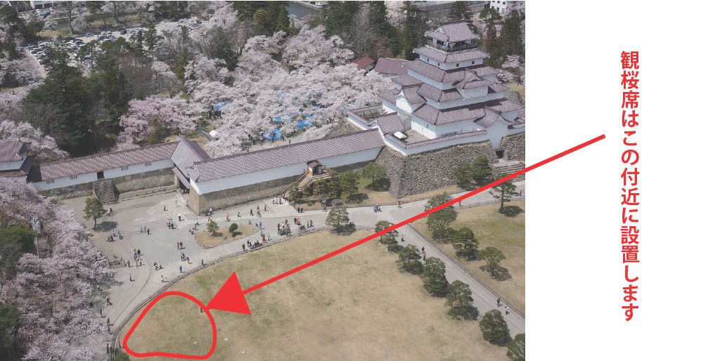 飲食物の持ち込みを可能とし、ゆったり過ごせる設えの特別席で鶴ヶ城の桜に囲まれて素敵な時間を過ごしてみませんか?