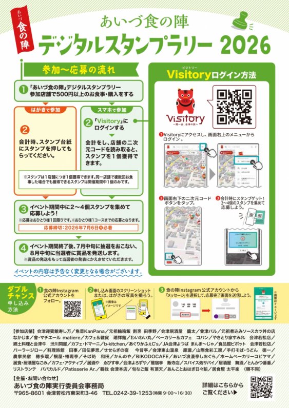 | 電話番号 | 0242-39-1253(あいづ食の陣実行委員会事務局(市農政課内)) |