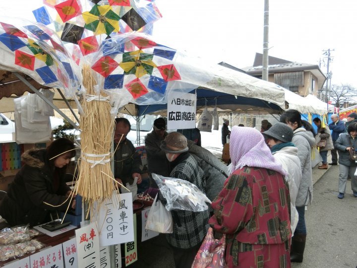 河東地区恒例の初市です! 地域の初市として定着し、地元商店等により各種のお店が出展し、縁起物の販売などが行われます。 当日の会場周辺は、交通規制及び駐車場が限られているため、できるだけバスや電車などの公共交通機関をご利用をお願いします。 ツイート エリア 中心市街地エリア(会津若松駅・鶴ヶ城) カテゴリ 花火・祭り 冬のオススメ(12月~2月) グルメ 歴史・伝統 イベント開催期間 毎年1月8日 イベント会場名 JR広田駅前通り 開催時間 10:00~18:00 住所 福島県会津若松市河東町広田字広田 電話番号 0242-75-2144(会津若松市役所河東支所まちづくり推進課) アクセス ■車をご利用の場合 磐越自動車道・磐梯河東ICより約10分 ■鉄道をご利用の場合 JR磐越西線広田駅下車 公式WEBサイト 周辺情報を表示する 観光・体験 グルメ お土産 イベント 宿泊 Google Mapの読み込みが1日の上限を超えた場合、正しく表示されない場合がございますので、ご了承ください。