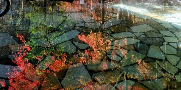 2枚目の紹介写真は、露天風呂の水面に反射する紅葉の様子です。