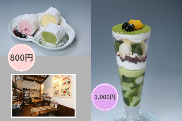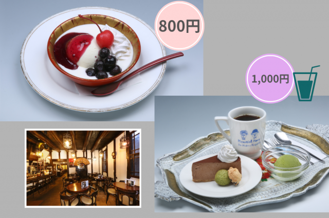 パンフレット掲載店舗で800円コース・1,000円コースの2つのコースでスイーツを楽しむことができます!