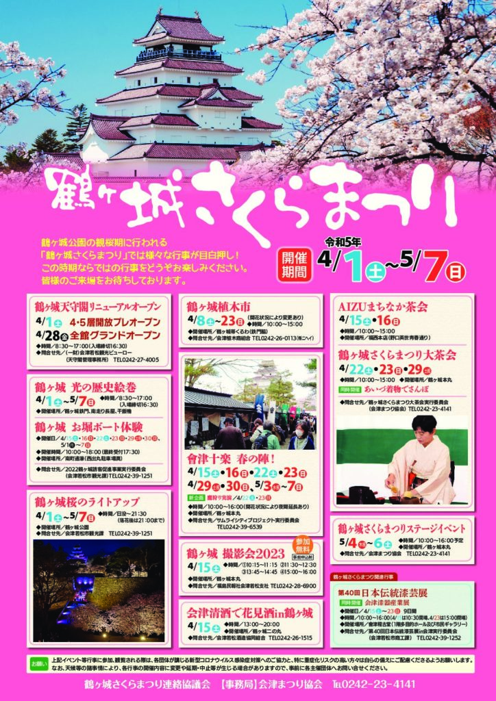 桜の開花時期に合わせ、4月から5月のゴールデンウィークまでの期間を「鶴ヶ城さくらまつり」と称し、様々なイベントを開催。