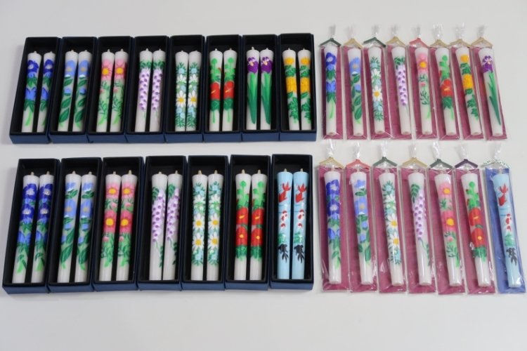 語り継がれる、会津の灯明 会津絵ろうそく 製造・卸・小売り会津の伝統工芸品「会津絵ろうそく」一本一本手作りされる、やさしい光をお楽しみください。40年間、会津絵ろうそく職人として従事した、父 山田七郎から伝統製法を受け継ぎ、 手造り・手描きにて製造しております。 ツイート エリア 中心市街地エリア(会津若松駅・鶴ヶ城) カテゴリ 工芸品 住所 〒965-0835 福島県会津若松市館馬町11-29 電話番号 0242-26-3480 駐車場 普通車2台 公式WEBサイト 周辺情報を表示する 観光・体験 グルメ お土産 イベント 宿泊 Google Mapの読み込みが1日の上限を超えた場合、正しく表示されない場合がございますので、ご了承ください。